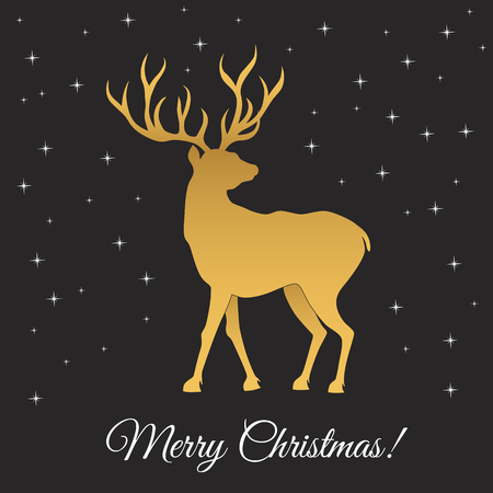 夜の空 クリスマスに黄金の鹿のイラスト素材 ベクタ Image